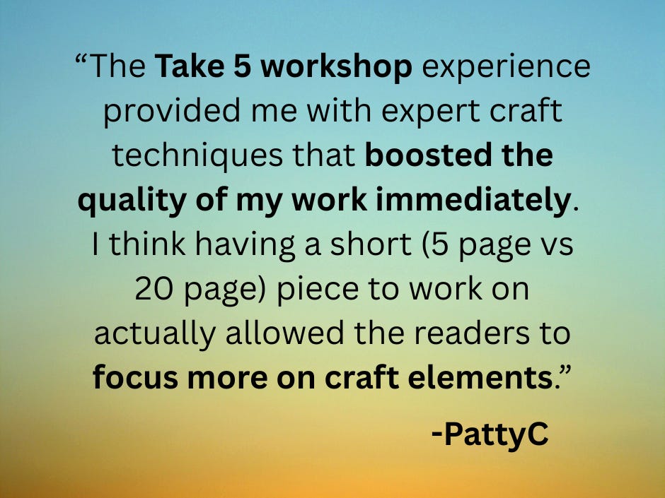 This monthly workshop for Premium MFA Lore Subscribers allows us to take a close look at a different 5-page submission each month, tailoring feedback to the needs of each writer. To join, become a Premium Subscriber today!
