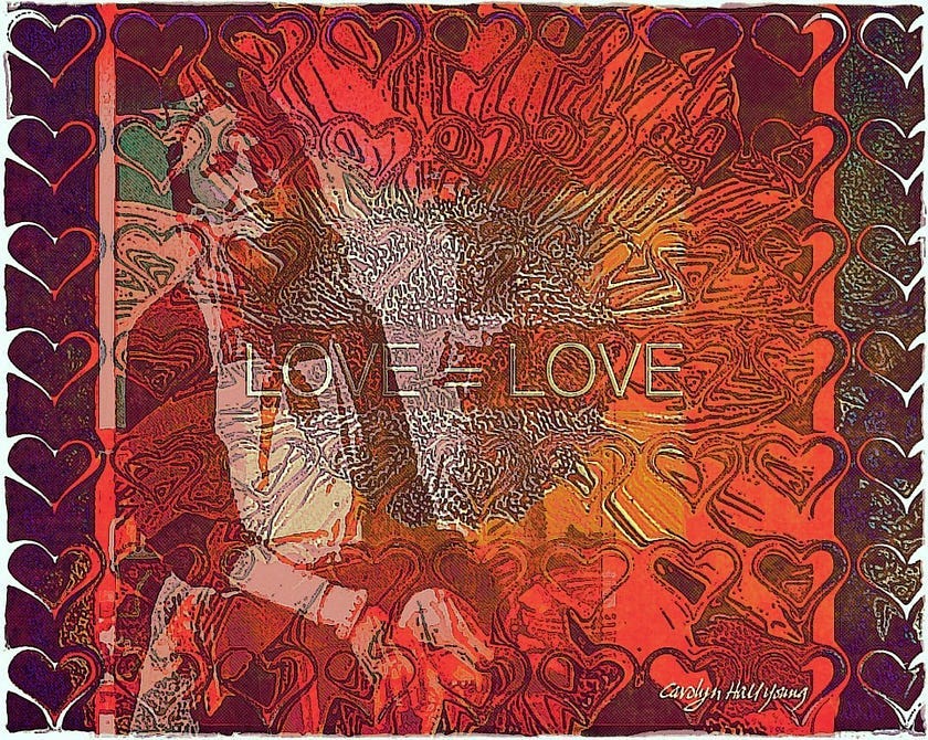 Carolyn’s personal motto was, Love wins. She didn’t coin that phrase, but she believed it with every cell in her determined body. She lived it. And she shared it effusively, indiscriminately, wildly. It infused her paintings and graphic designs. It strengthened her physical being. And it deepened her connections with everyone who encountered her.